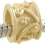 14 karat on sterling silver vermeil European Bead Charm. This bead is decorated with dots and vines. The large unthreaded hole allows it to slide onto your bracelet. Design your own beaded charm jewelry!