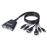 Item #: 90284D. This Switch provides an affordable KVM solution that saves workspace while giving you control of two PS/2 computers from one console. Its compact design with built-in cabling saves you time on installation, desktop space, and money. The Switch includes such features as mouse and keyboard emulation to ensure smooth boot up and operation, as well as hot key functionality so you can switch ports easily through simple keyboard commands. The unit supports high-quality video resolution