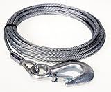Galvanized aircraft cable is a common choice for use as a winch line. Different sizes are available, depending on the application, each with a safety hook one one end. This size (3/16″ x 25 ft) is rated for manual winches up to 1800 lb capacity, or for StrongArm electric winches SA5000DC and SA5015DC.