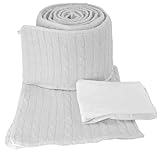 - 3 piece set includes cotton cable knit bumper and blanket, and fitted sheet with elastic all around for secure fit Fits all standard cradles